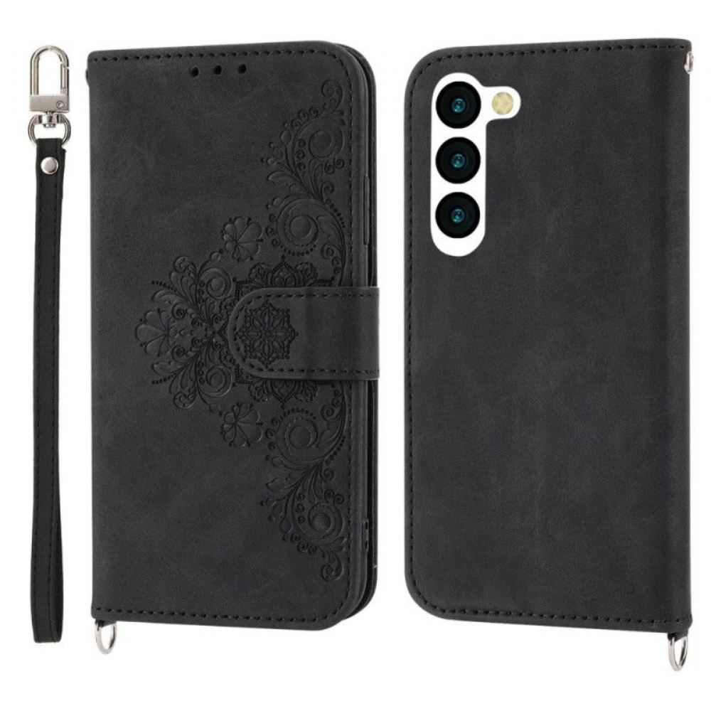 Flipové Pouzdro Na Samsung Galaxy S23 5G Na Lana Pásková Krajková Mandala