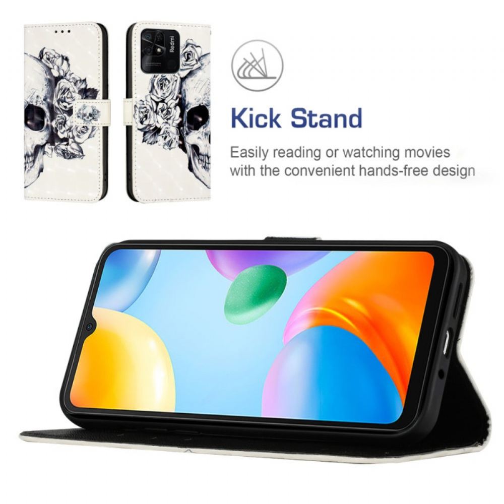 Flipové Pouzdro Na Xiaomi Redmi 10C Na Lana Lebka S Popruhem