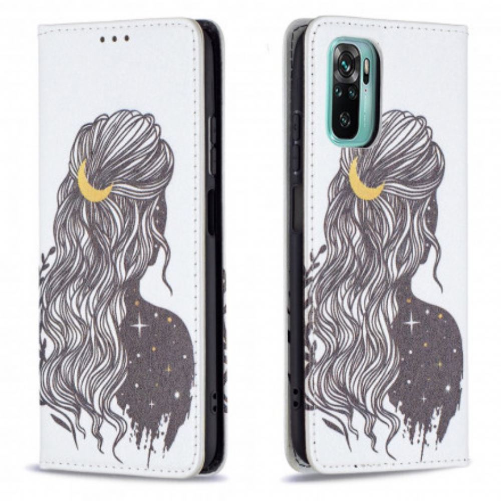 Chraňte Celý Svůj Xiaomi Redmi Note 10 / Note 10S Tímto Odklápěcím Krytem Zdobeným Mladou Dívkou S Pěknými Vlasy.